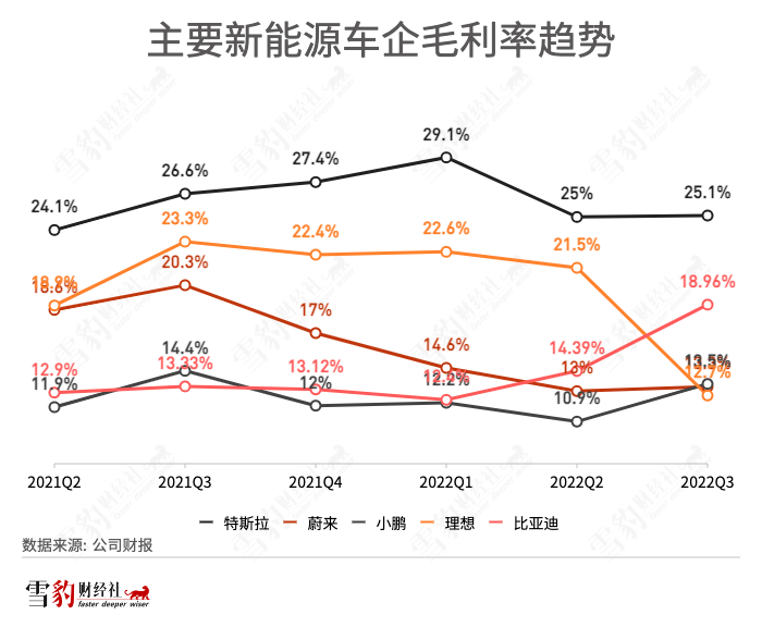 但必须要注意的是,李想曾表态,希望将毛利率控制在25%的水平。以往,理想的毛利率长期在蔚小理中居首,也高于比亚迪这样的传统车企。但从今年Q2开始,理想的毛利率已经连续两个季度下滑。