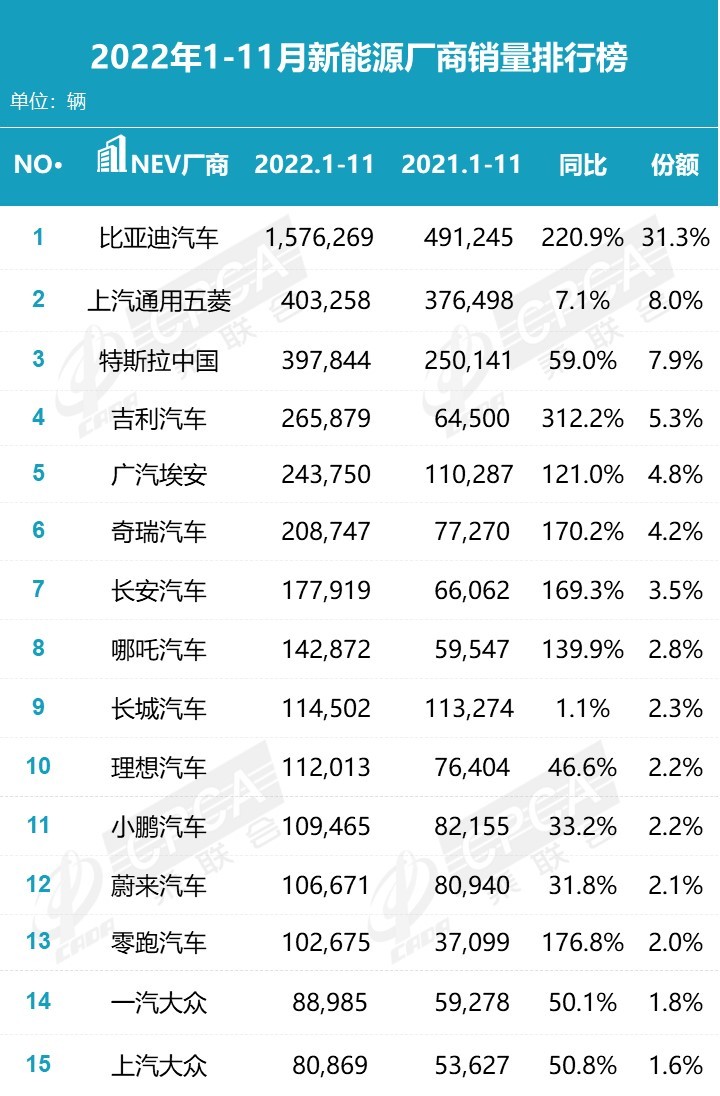埃安1-11月的销量为241149辆,提前实现全年销量翻倍;极氪1-11销量6.66万辆,完成了销量目标7万辆的95.16%。