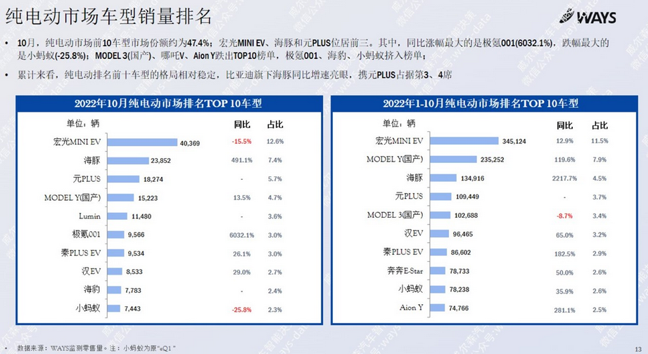 数据显示,截止11月,新能源汽车零售渗透率连续9个月保持在25%以上,连续三个月在30%以上,其中11月为36.3%,同比提升15%;1-10月的累计零售渗透率为26.5%,提前两年实现了规划目标。