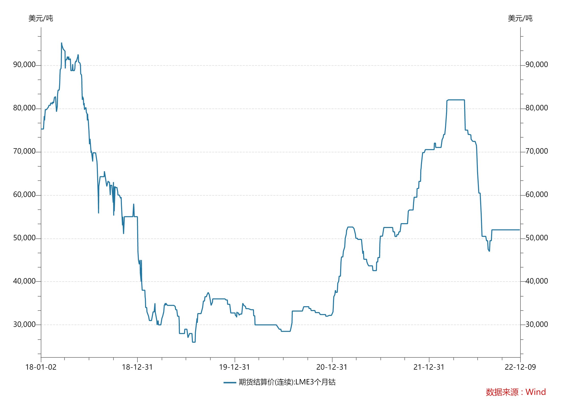 今年以来钴价已由年初的7.05万美元/吨(LME3个月钴期货结算价,下同)下滑至如今的5.2万美元/吨,下滑幅度高达26%,较3月高点8.2万美元/吨下滑37%。
