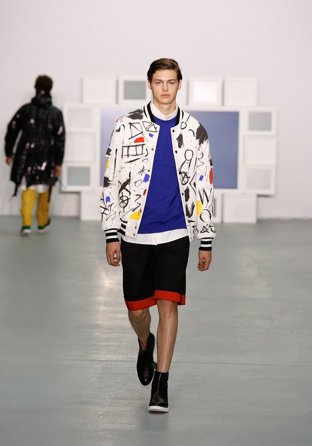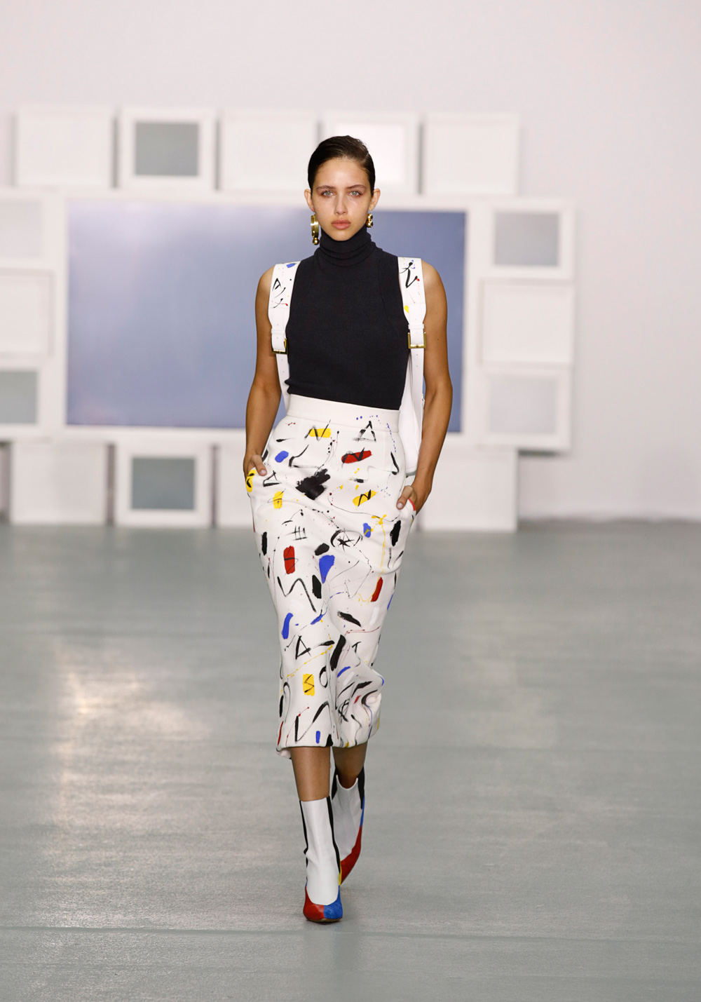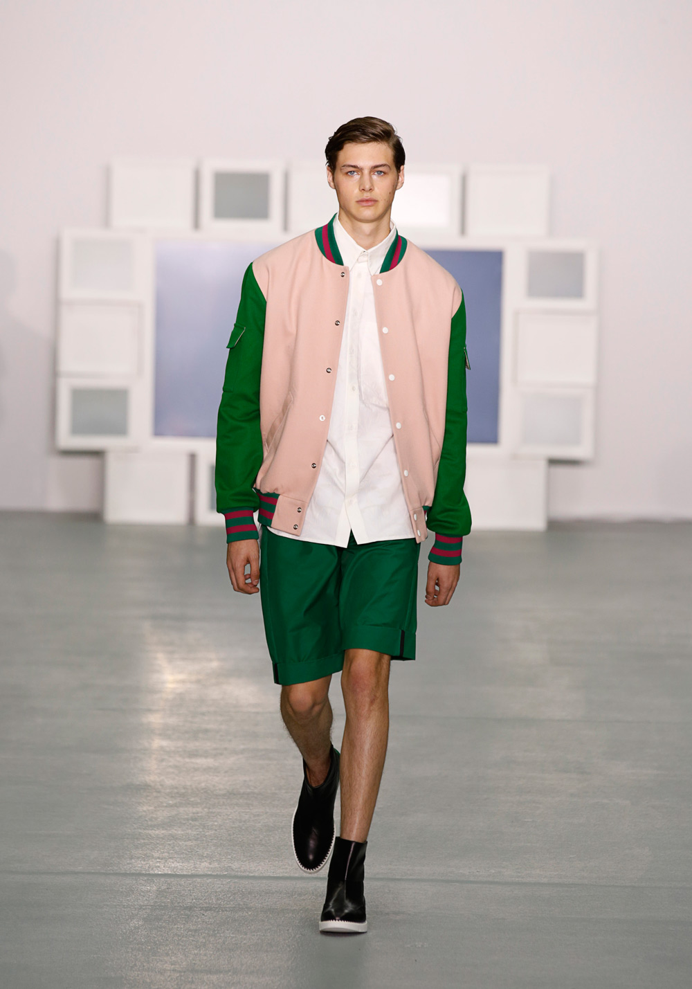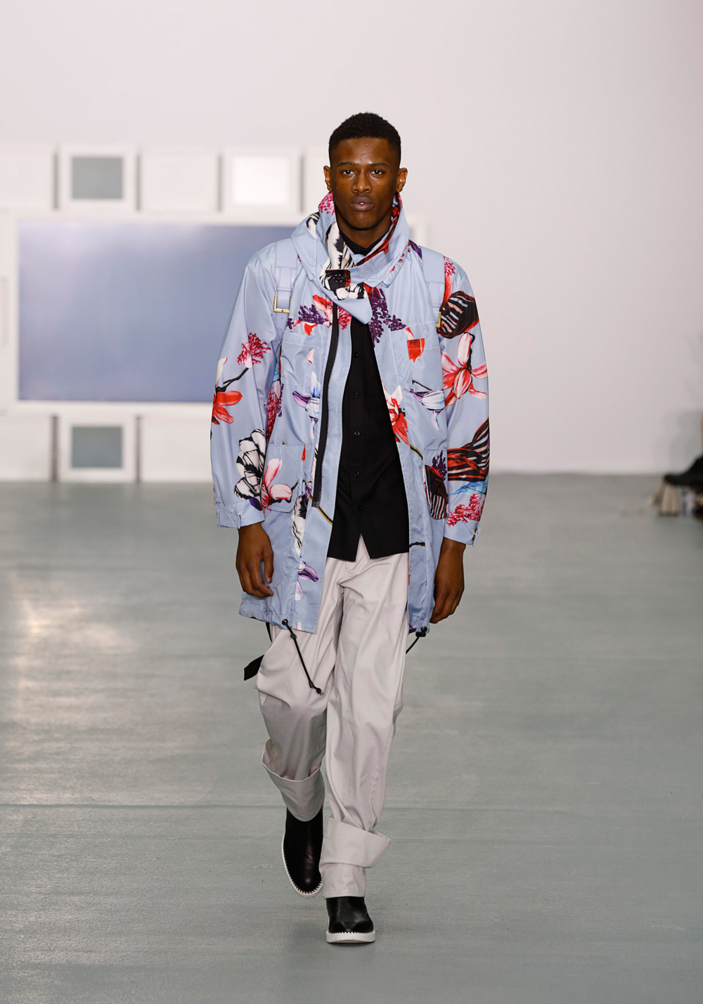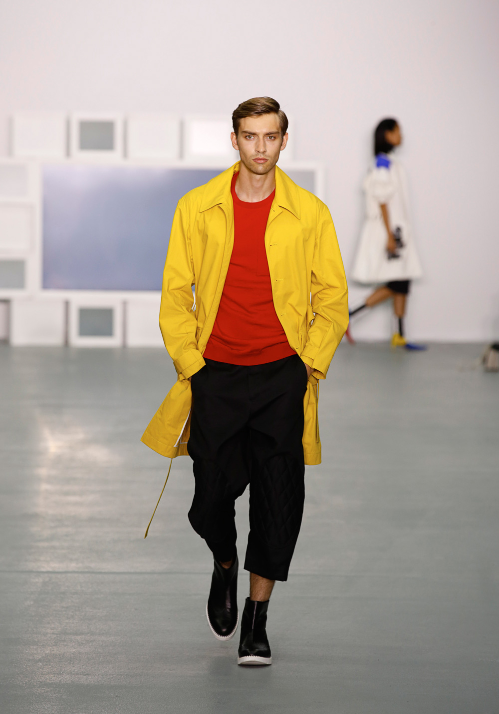 虽然期待值颇高,Teatum Jones的首场男装发布很难令人臣服,除了色彩粉嫩和宽肩设计外,几乎没有其他记忆点。临到尾声,色彩趋于明艳浓烈,最终以黑白,亮黄、艳红、钴蓝收场。