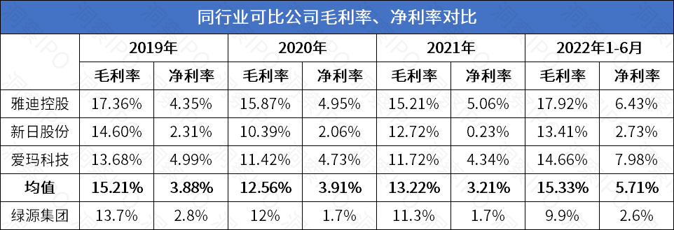 虽然毛利率低是电动两轮车的行业通病,但绿源集团的毛利率相较于同行业其他公司更低,且逐年降低,报告期内分别仅为13.7%、12%、11.3%及9.9%。