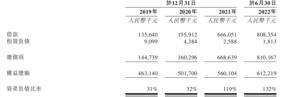报告期内,绿源集团的借款分别为1.36亿元、1.56亿元、6.66亿元及8.08亿元,资产负债率从31%、32%快速上升至119%及132%,名义上已经资不抵债。