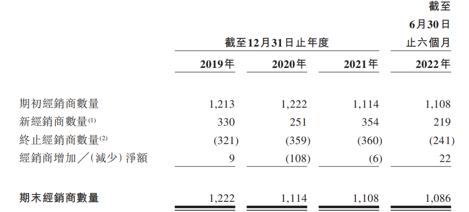 当期终止的经销商数量为359家,同比增加11.84%,当期新增加的经销商数量却仅有251家,同比减少23.94%,经销商数量净减少108家。