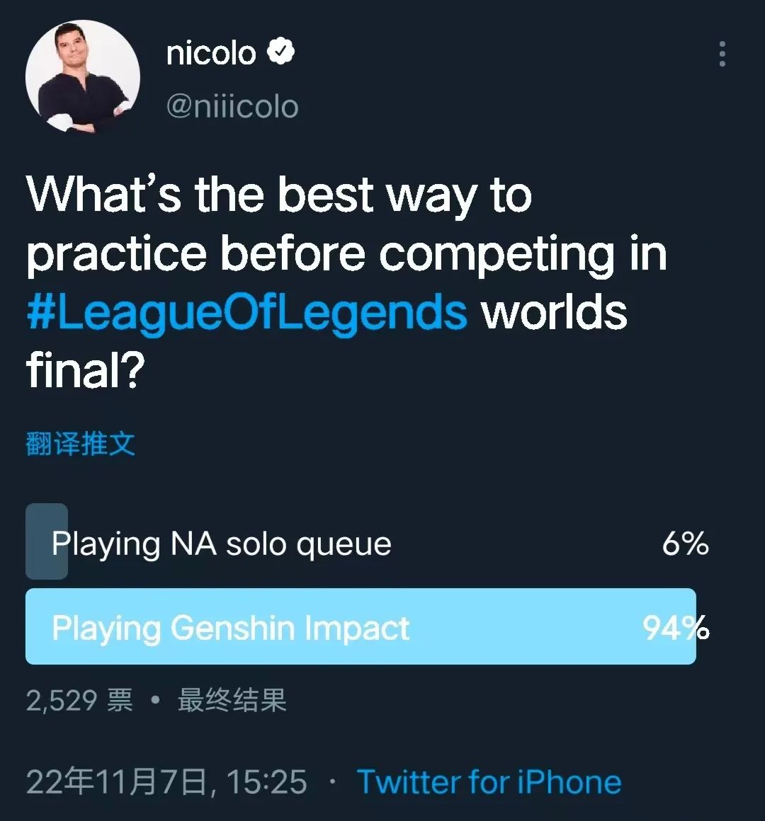夺冠后,拳头游戏CEO Nicolo也在推特上开玩笑道:“试试《原神》吧。这游戏有趣,轻松,并且能让你在LOL中变得更强。”在国内,诸如Uzi、Doinb等英雄联盟头部主播也都开始直播原神,成为原友的一份子。