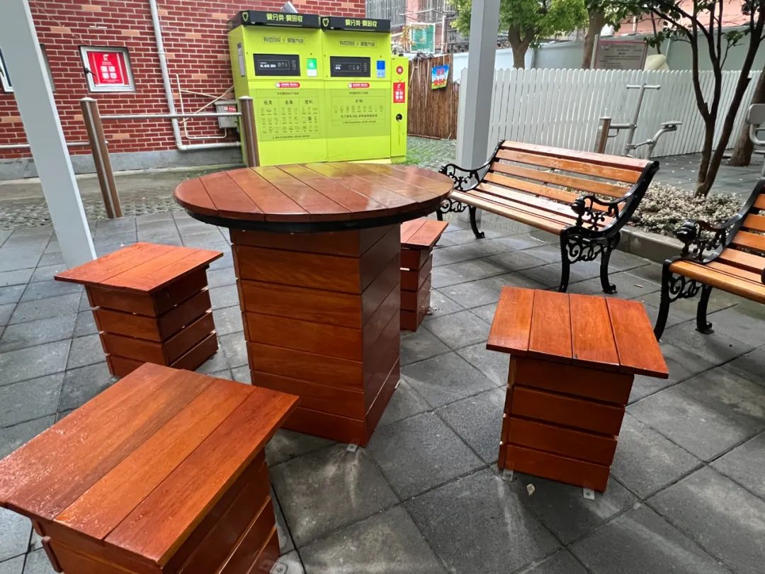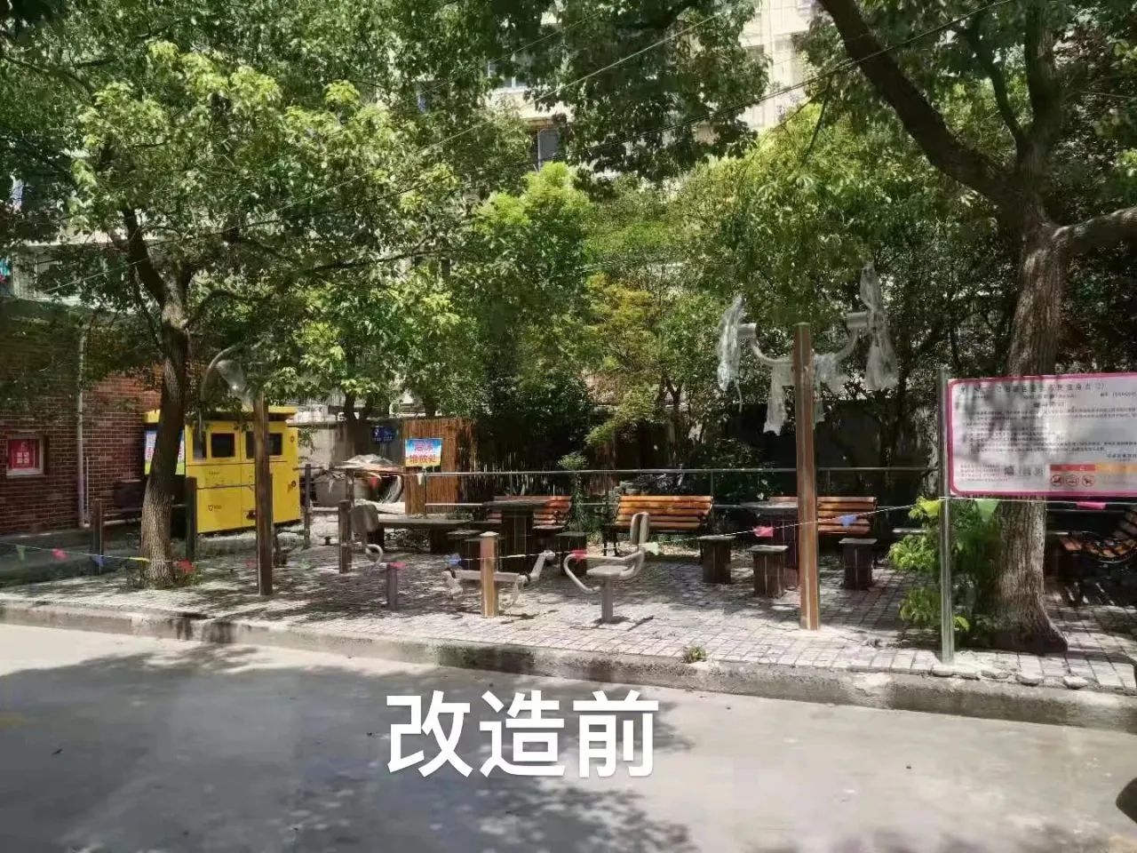 改造后的空间,原有又沉又凉的石头桌椅换成了温暖轻便的木质桌椅,并在一旁摆上了数张长椅。长椅后方的小路也被打通了,方便居民出行。