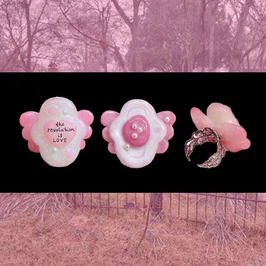 可爱文化的起源可以追溯到亚洲父权制的副产品——不断发展的女权运动对父权制进行了批评,因为“可爱”总是被认为是肤浅和软弱的。作者利用亲身经历(认为自己是一个女性主义者,但生活在“可爱”的生活方式中)来解开这一交叉问题。粉色行动TRIL(the revoluiton is LOVE)通过粉色、毛绒等可爱元素展现出可爱也可以是有力量、有视觉冲击力的,展示可爱和“可爱的人”也可以强大和独立,打破部分人对可爱软弱顺从的刻板印象。作品主要以毛绒挂饰、发夹、戒指等饰品形式呈现,希望使用者在佩戴时可以感受到来自自身的可爱力量。