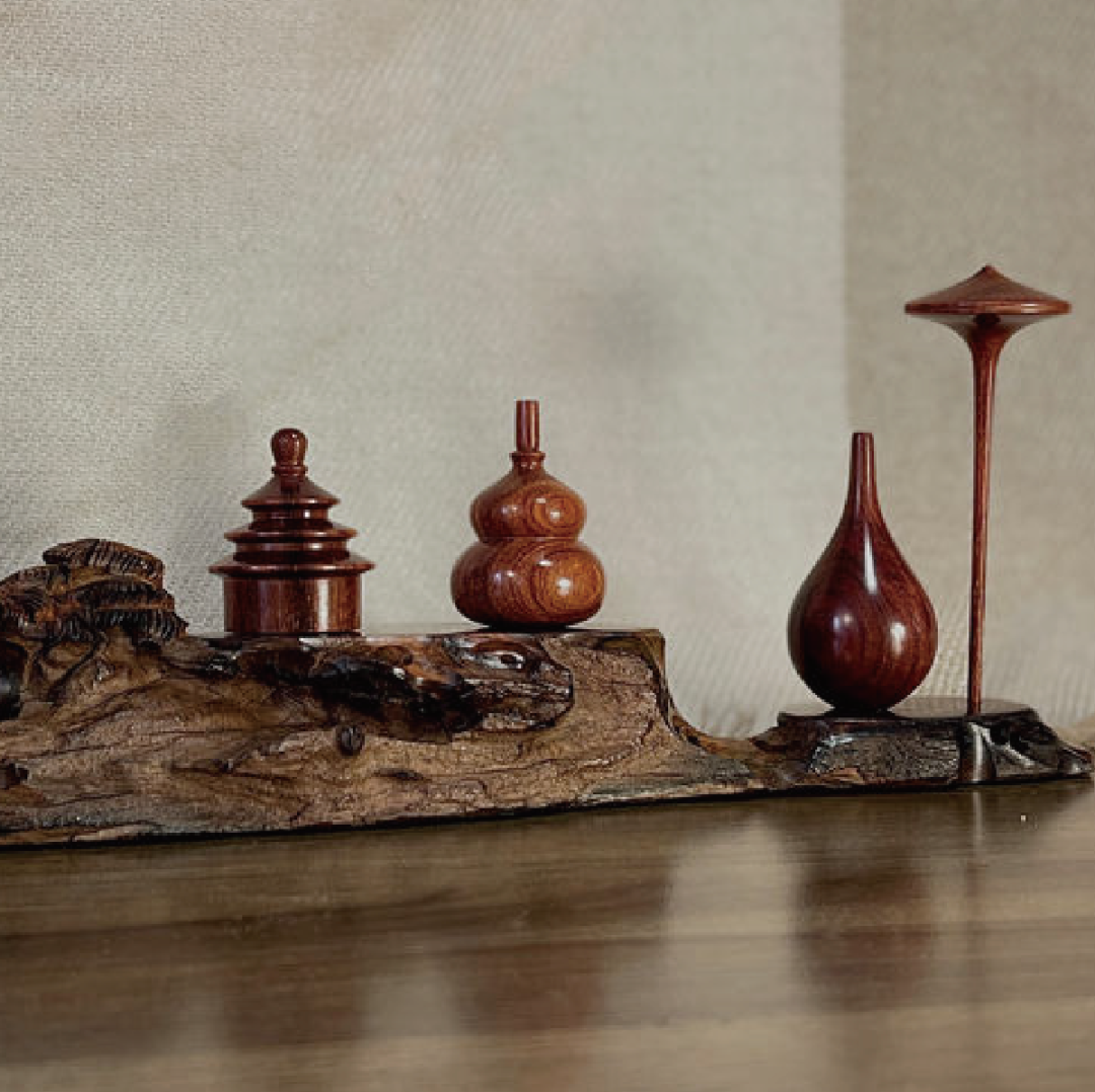 奇木图原创手工木制陀螺把传统工艺与现代理念相结合,选用各类原生态木料,纯手工精心制作而成。每款陀螺在创作时注重保留木材原生花纹及纹理,并在完成时赋予其不同的意义。