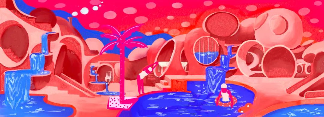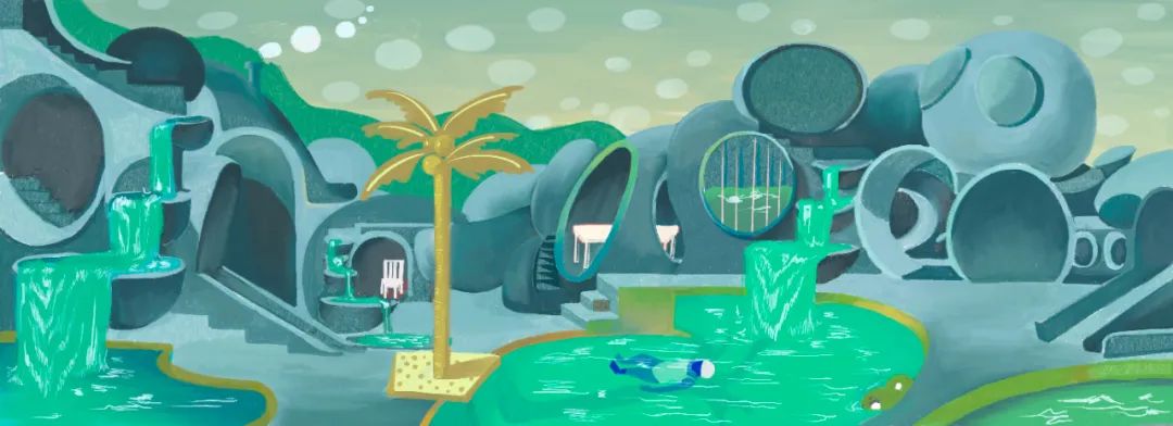 本系列作品通过三种不同色调的泳池和不同动态的人表现出三种不同的情感,希望观看作品的人可以在画中找到自己情绪的共鸣,在声色犬马的世界中找到自己属于心灵的一片归宿。