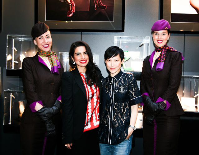 如果不是因为伦敦新邦德街这家Jimmy Choo店里站着一位空姐,你根本想象不到这是阿联酋阿提哈德航空与Jimmy Choo联合举办的一场活动。