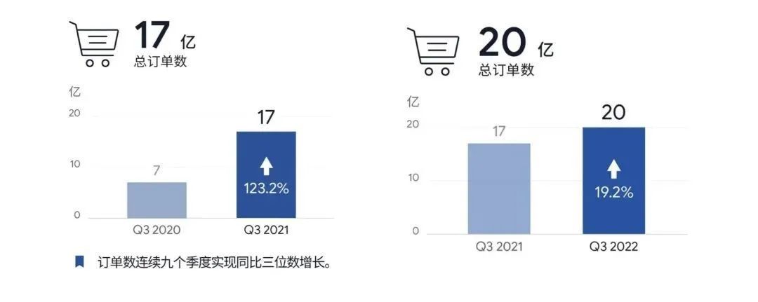 去年三季度,Shopee的订单数量同比增长123.2%,并且连续9个季度实现同比三位数的增长。而今年三季度,虽然订单量还在增长,但增速出现了断崖式下跌,同比仅增长19.2%。