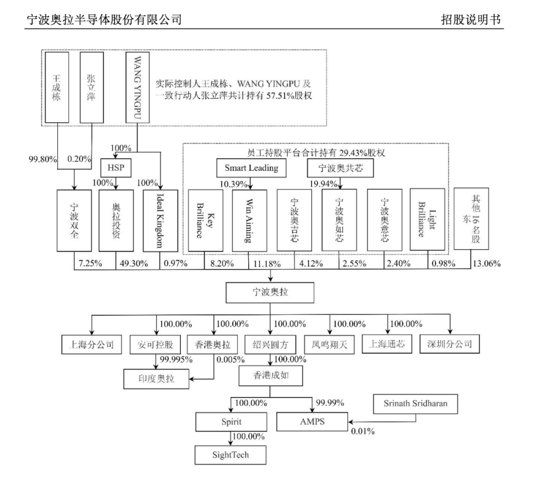 IPO后,奥拉投资持股比例降为36.97%,Win Aiming持股8.39%,Key Brilliance持股6.15%,宁波双全持股5.44%,宁波奥吉芯持股3.09%,宁波奥如芯持股1.91%,宁波奥意芯持股1.8%。