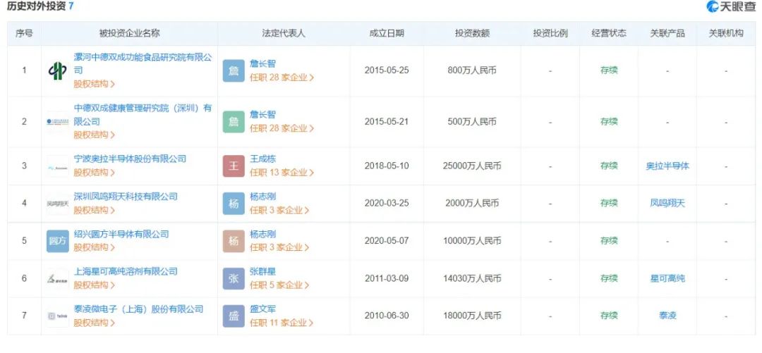 在制药生意之外,王成栋父子名下有双成投资、HSP Investment两家负责投资业务的主体公司,王成栋自2010年起一直担任双成投资董事长。泰凌微,就是王成栋父子在此期间的其中一笔投资。