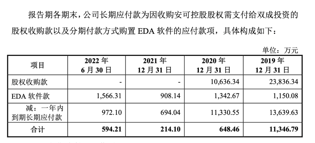 印度奥拉主要从事时钟芯片、电源管理芯片的研发工作。奥拉股份的招股书中并未言明上述收购的具体金额,但有提到“公司长期应付款为因收购安可控股股权需支付给双成投资的股权收购款以及分期付款方式购置EDA软件的应付款项。”