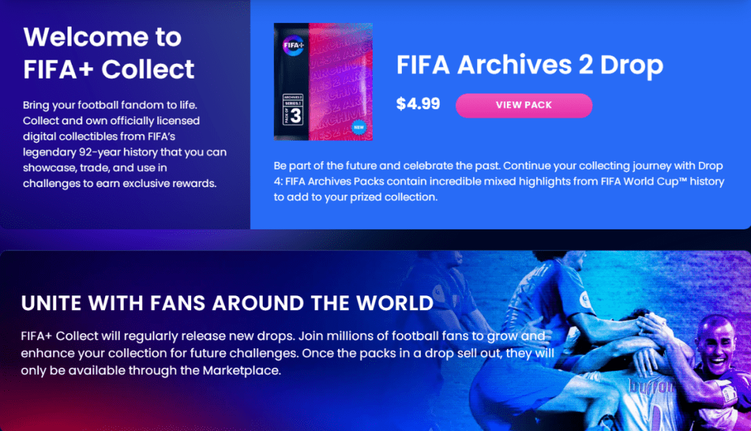 目前,FIFA+Collet上架的两套NFT卡包共计售出17.6万套,累计营收88万美元。
