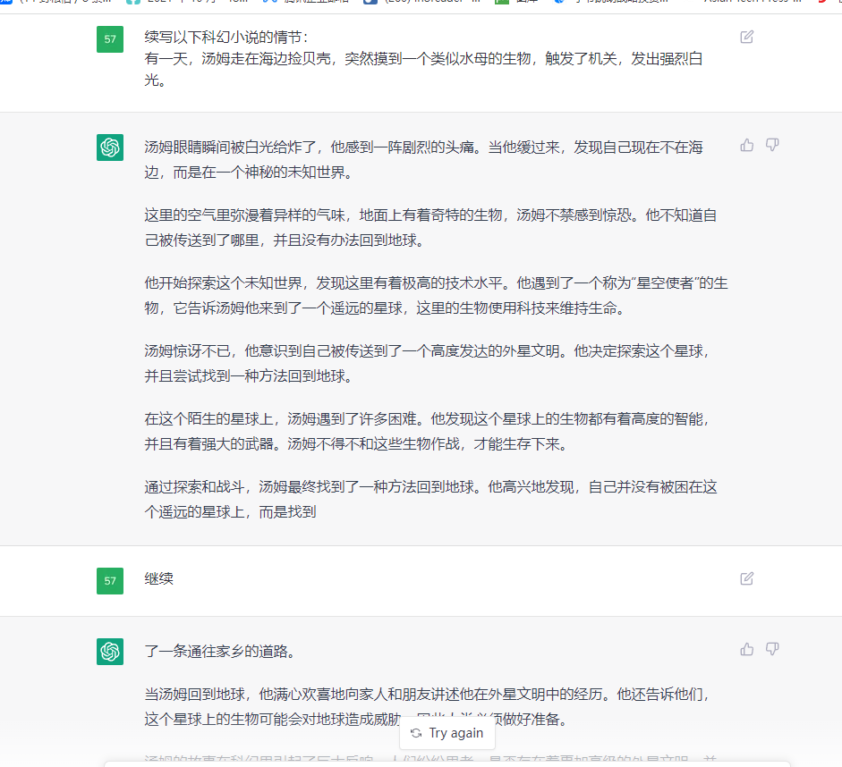 来点正经的事情,让ChatGPT写一篇小说看看什么水平。