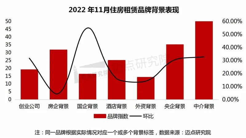 1)细分背景品牌表现:国企系品牌影响力最为稳健,滨纷公寓品牌指数快速增长