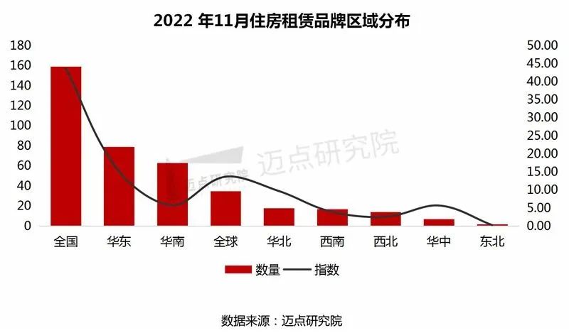 综合住房租赁品牌数量和品牌指数来看,本月全球地区的品牌整体表现较佳。其中雅遇长租公寓表现最佳,位居全球住房租赁品牌榜单第3名。雅遇是雅诗阁在中国创立的本土长租公寓品牌。而雅诗阁作为一个具有良好口碑基础的国际化公司,拥有丰富、专业的公寓运营经验。雅诗阁中国董事总经理陈志商表示,在2022年的前三个季度中,雅诗阁旗下物业的长住部分收入持续增长,目前已占全部营收的67%,相较2021年又提高了7%。未来,雅诗阁将持续发力长租公寓市场赛道,加码发展在华长租公寓业务。