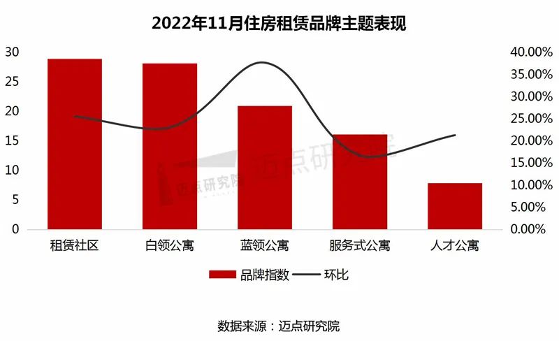 3)细分主题品牌表现:方隅公寓位列租赁社区第一位,服务式公寓尔家公寓排名迅速攀升
