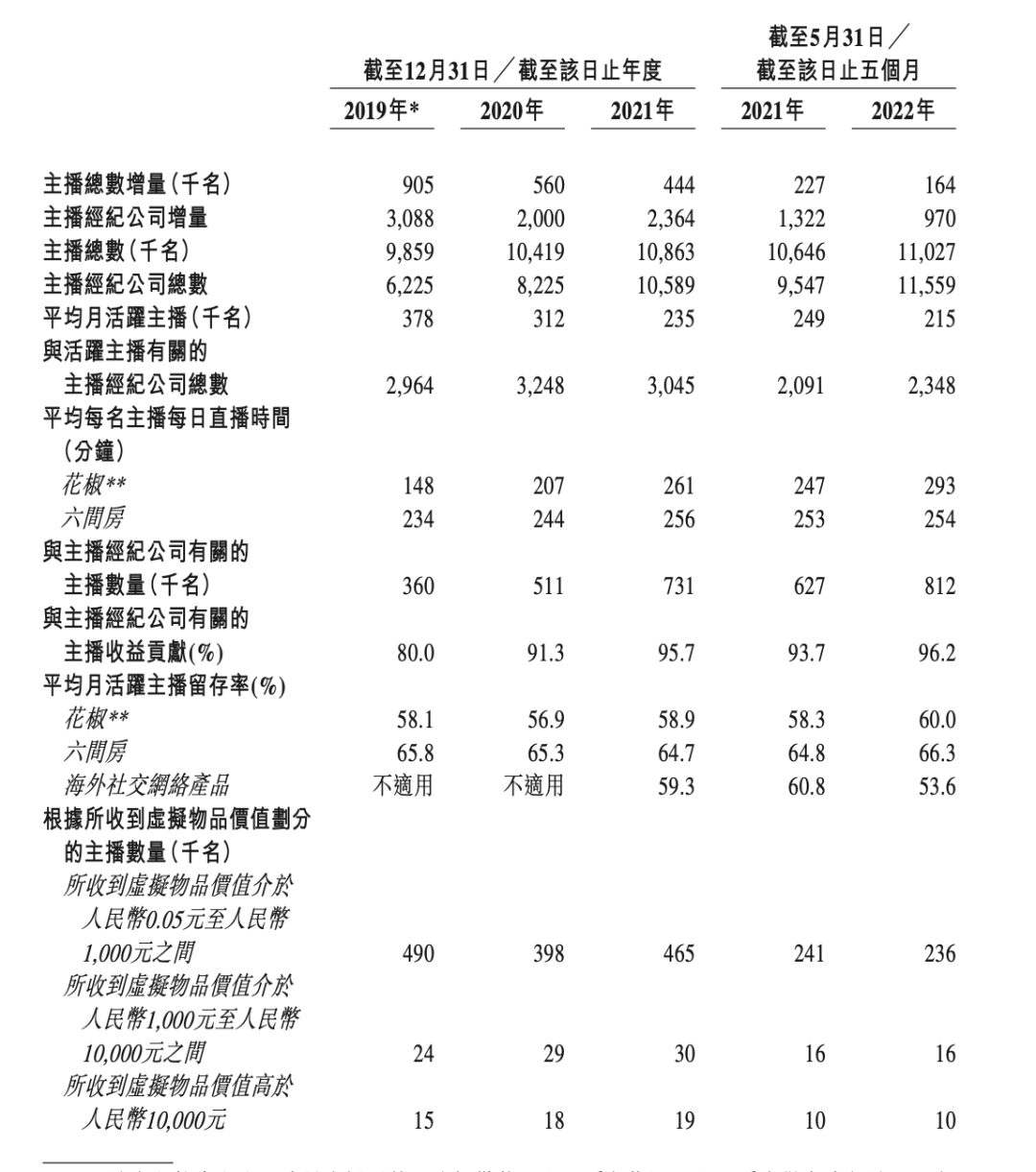招股书显示,报告期内花房集团分别有958.9万、1041.9万、1086.3万、1102.7万名主播。
