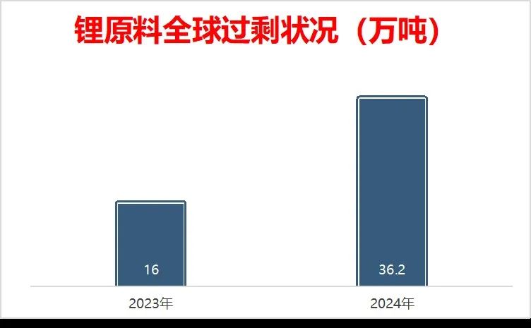 国盛证券认为,以碳酸锂为代表的锂原料,2023年、2024年全球的供给分别为117.6万吨、172.5万吨的供给,分别过剩16万吨、36.2万吨。
