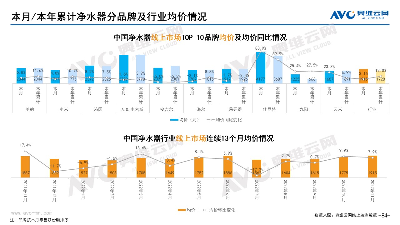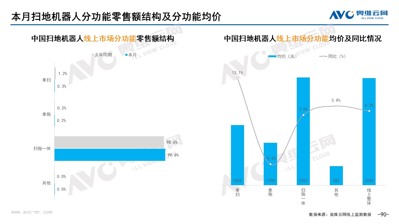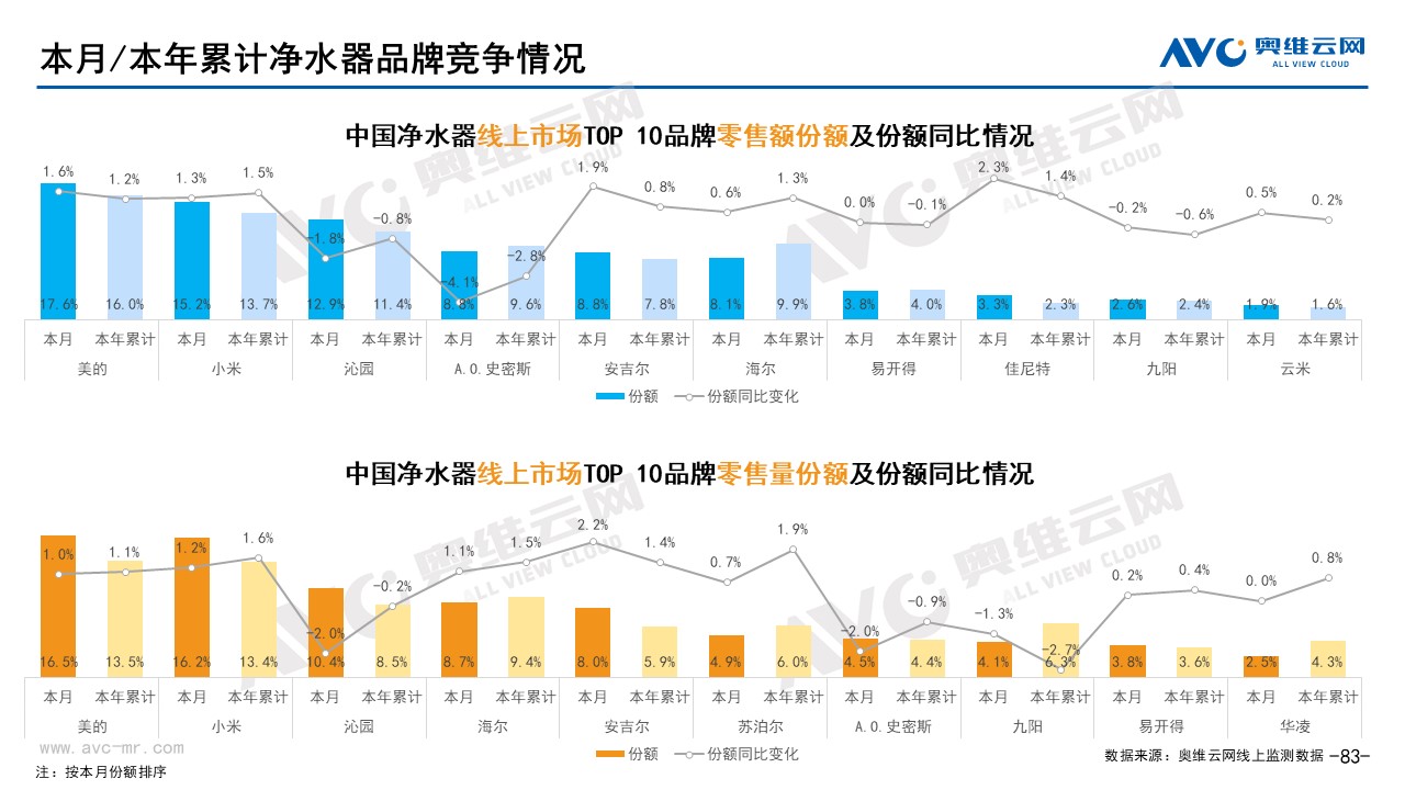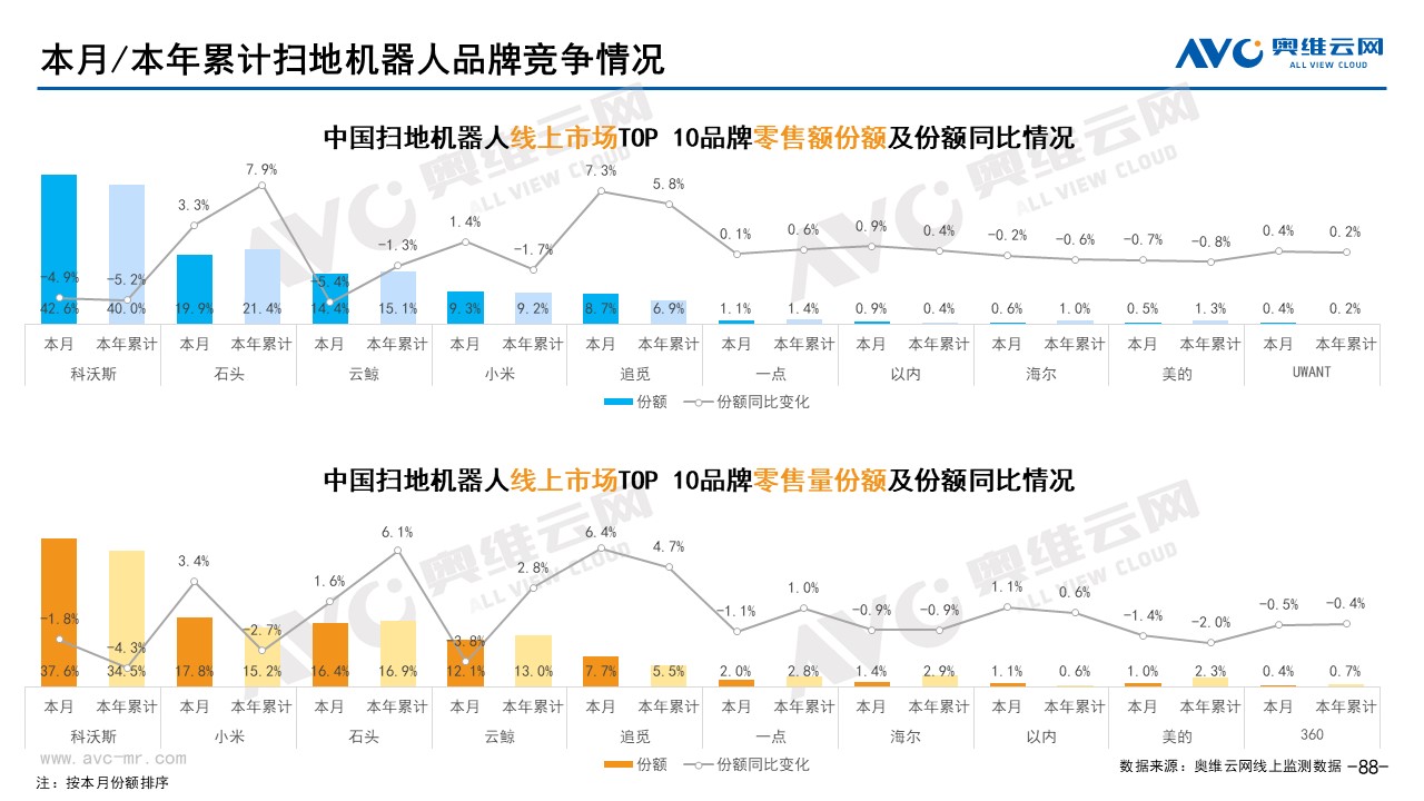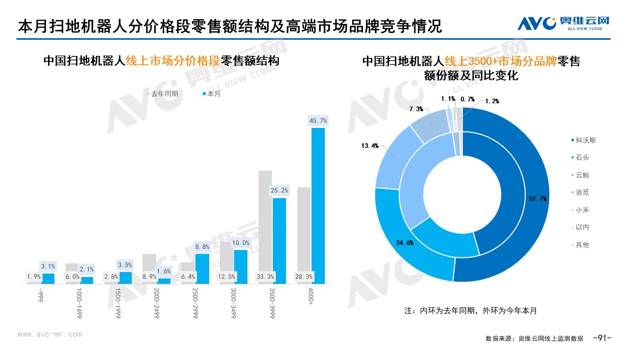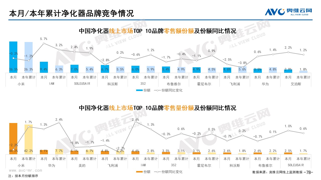 环电:据奥维云网(AVC)线上市场监测数据显示,本月环电主要品类中,净化器、净水器和扫地机器人线上零售额规模同比分别为-27.6%、-20.2%和-20.3%;净化器、净水器和扫地机器人的均价分为1842元、1915元和3286元,同比分别为13.3%、3.1%和4.5%;各品类中,高端品零售额占比分别为12.0%、1.9%和70.9%,同比分别为1.5%、-1.3%和9.4%。