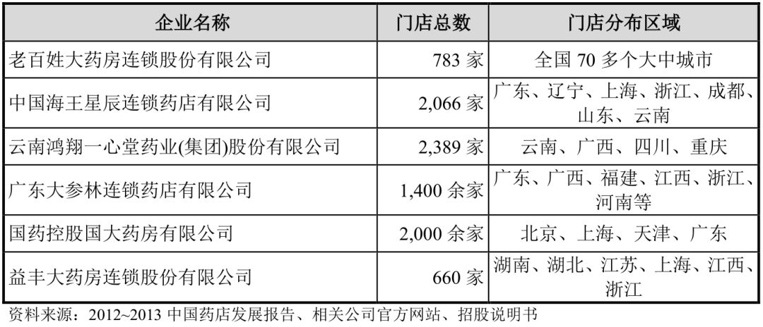 招股书显示,截至2013年底,益丰药房在全国主要医药零售企业中实力并不占优,门店数量明显低于可比公司。