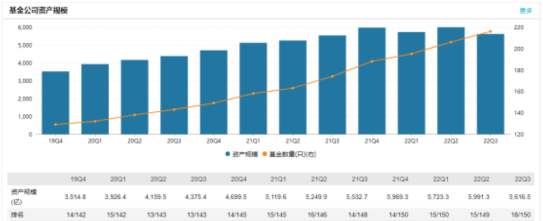 作为“老五家”之一,华安基金在我国基金史上留下过浓墨重彩的一笔:创造了基金界中的众多第一,摘得了无数奖项,规模曾进入前五名。不过,近年来华安基金规模增长迟滞,行业排名也已跌出前十。截至2022年三季度末,华安基金的管理规模为5616.5亿元,在150家公募基金中排名第18,比上季度下滑了3位。