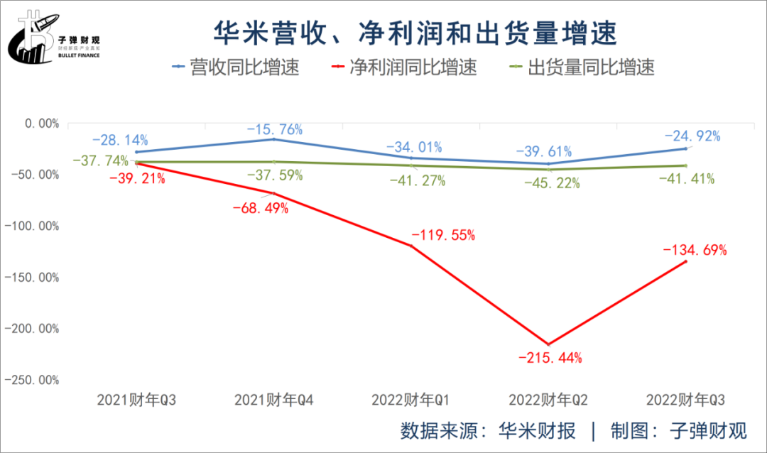 最新财报显示,2022年第三季度华米营收12.06亿元,同比下降24.9%。而营收下滑的主要原因是小米手环销售额下降了43.2%。
