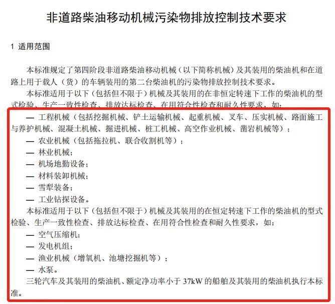 据了解,非道路国四排放标准于2022年12月1日正式实施,与国三相比,国四设备单机氮氧化物排放量降低13%-45%,颗粒物排放量减少50%-94%。