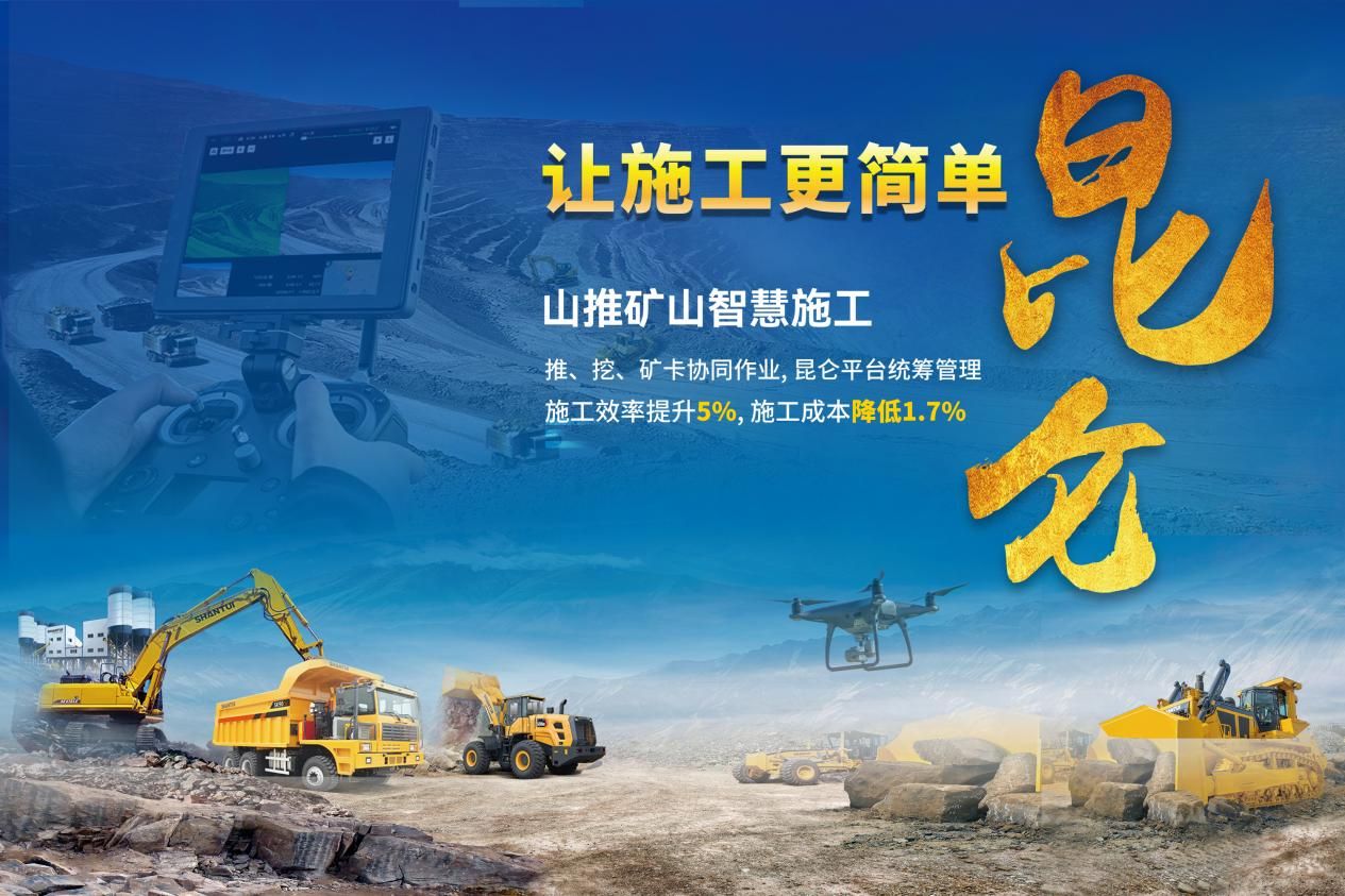 矿山场景,运用远程可视化技术、5G智能遥控技术和昆仑平台,结合山推智能车载终端,可解决工作量统计繁琐及恶劣环境下施工人员安全等问题。