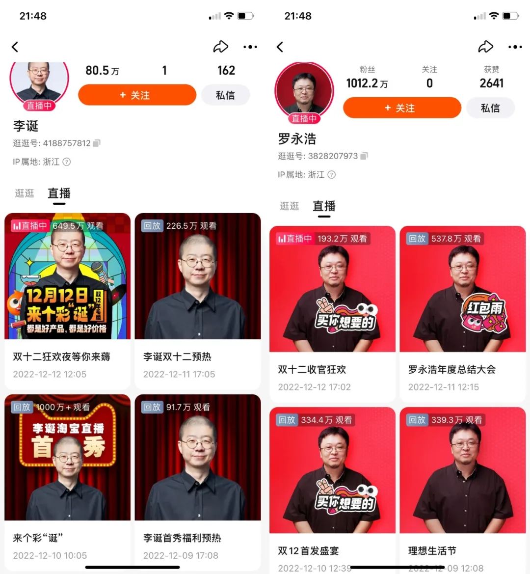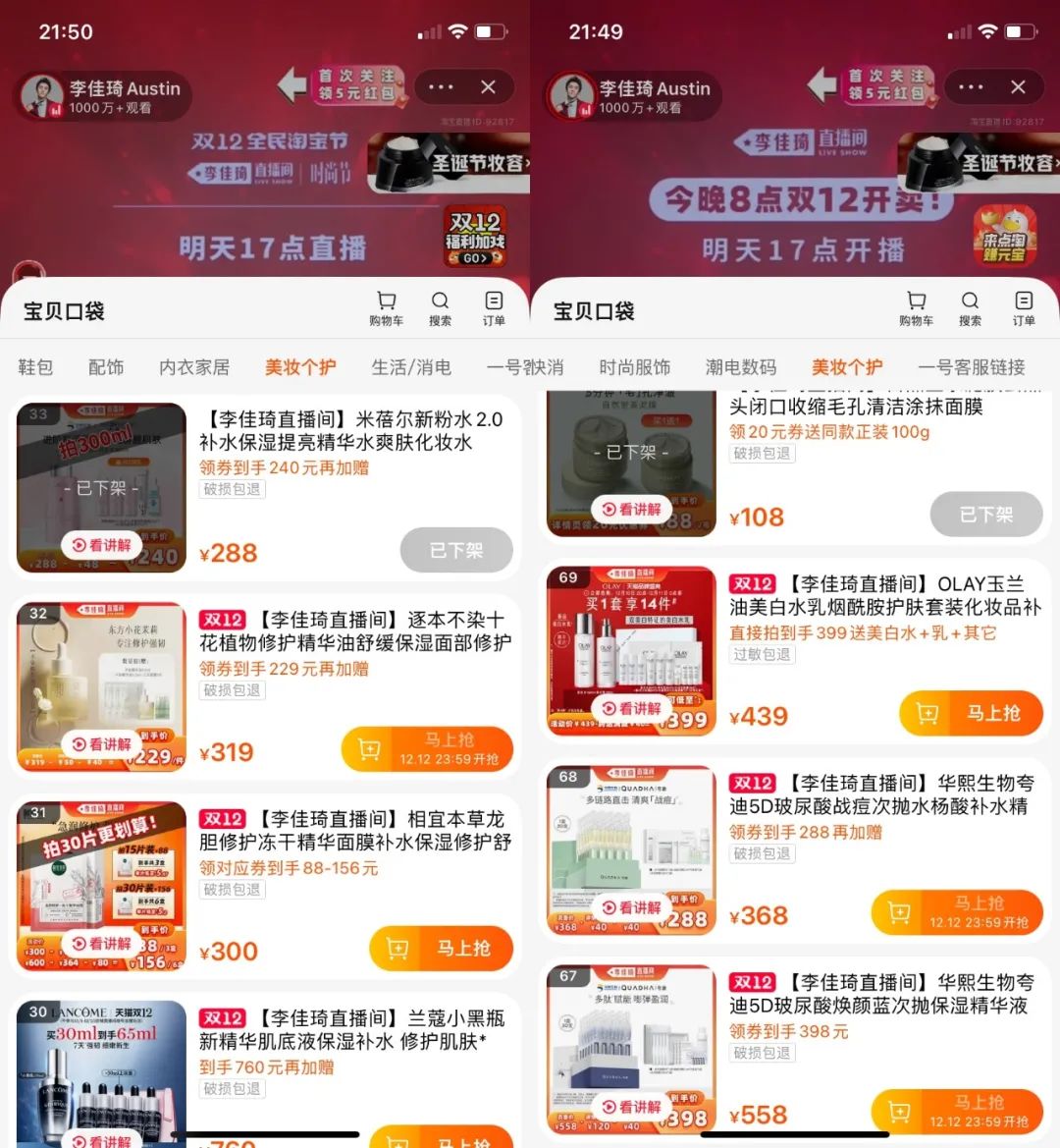 双12大促前夕的12月10日,短暂“消失”了10天的李佳琦终于又重回直播间。另一边脱口秀演员李诞淘宝直播首秀引起了不少关注。