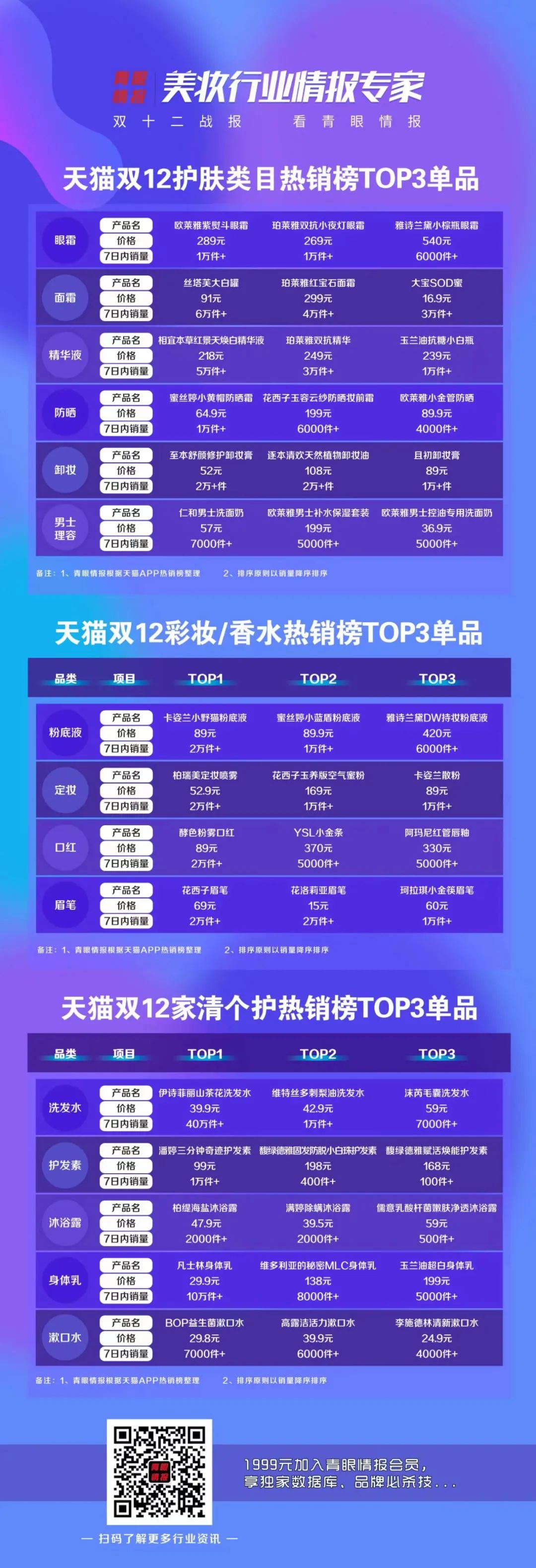 主播们对于双12的态度和安排,反映在大盘数据上也并不理想。青眼情报根据天猫APP热销榜整理了天猫双12护肤、彩妆类目热销单品,护肤品类销量最高的丝塔芙大白罐仅为6万+件,彩妆品类销量最多的也仅有2万+件。