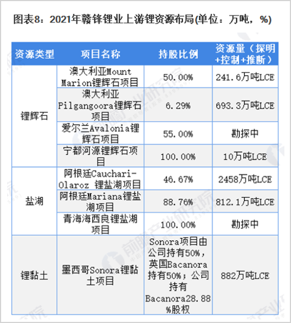 在盐湖资源方面,赣锋投资了阿根廷Cauchari-Olaroz锂盐湖项目、阿根廷Mariana锂盐湖项目和青海海西良锂盐湖项目,盐湖的锂资源储量合计能生产3000多万吨碳酸锂。