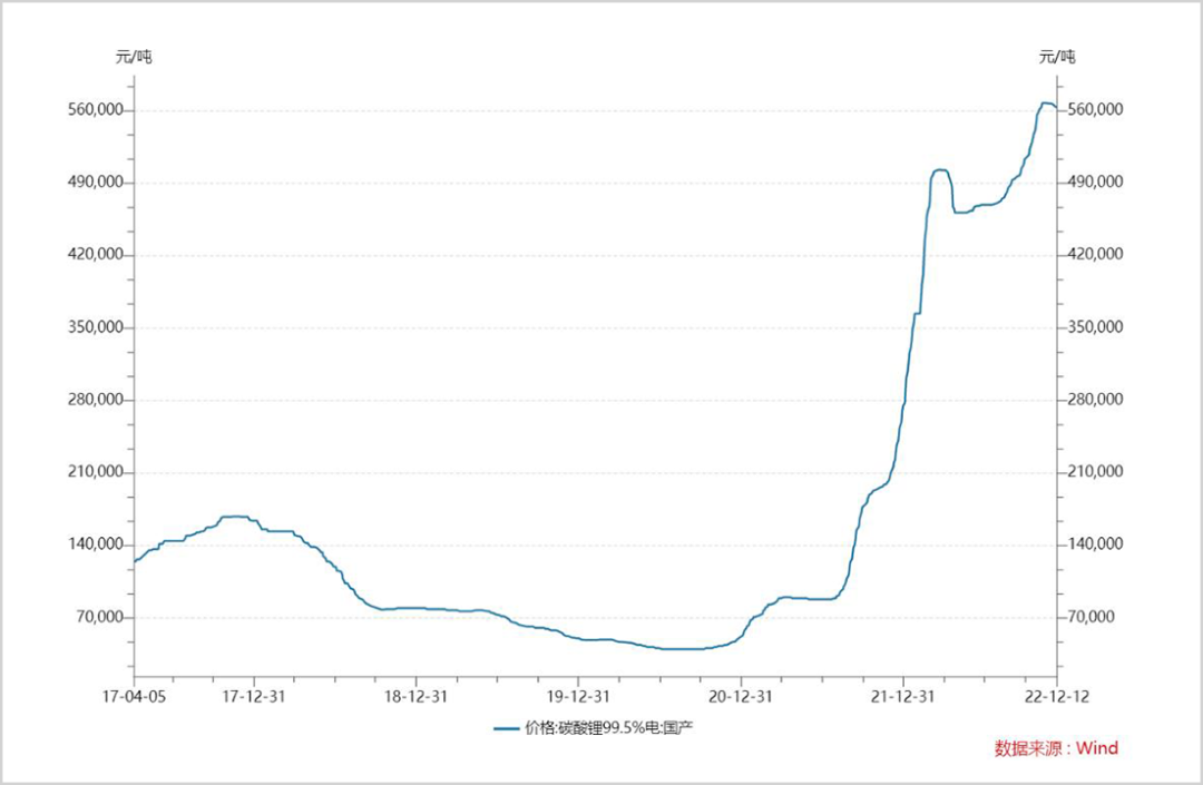 2020年6月,电池级碳酸锂价格还只有4.1万元,到今年年初已经高达28万元/吨,涨了7倍之多。