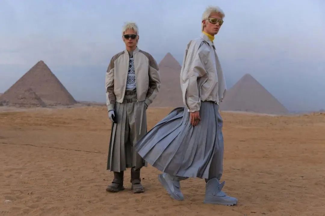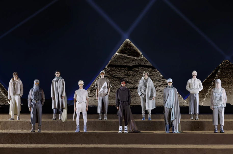 本次早秋男装大秀是Dior首次来到埃及办秀,在历史上也是第一次有时装品牌来到「七大奇迹」之一的巨型金字塔下举办大秀。