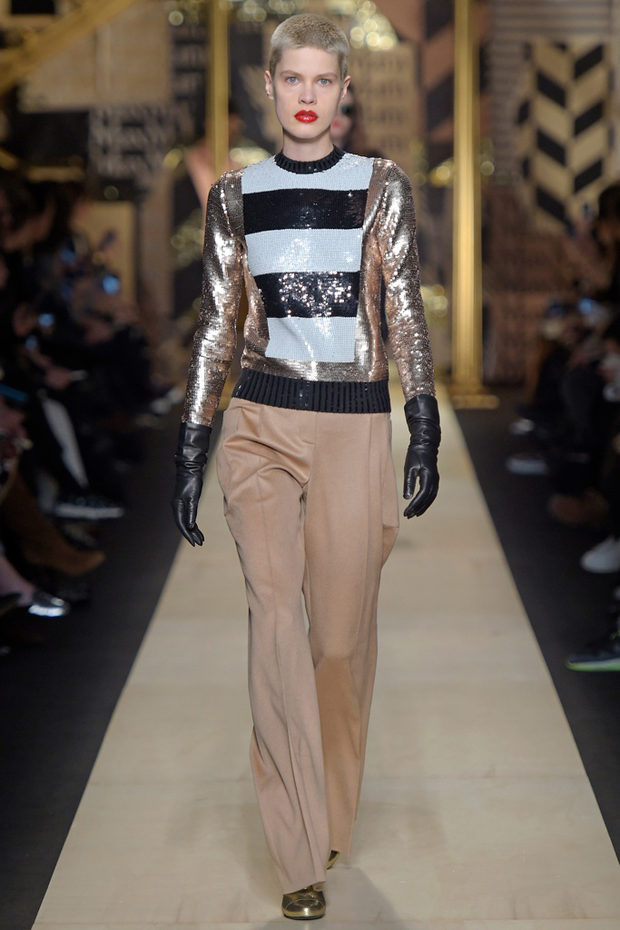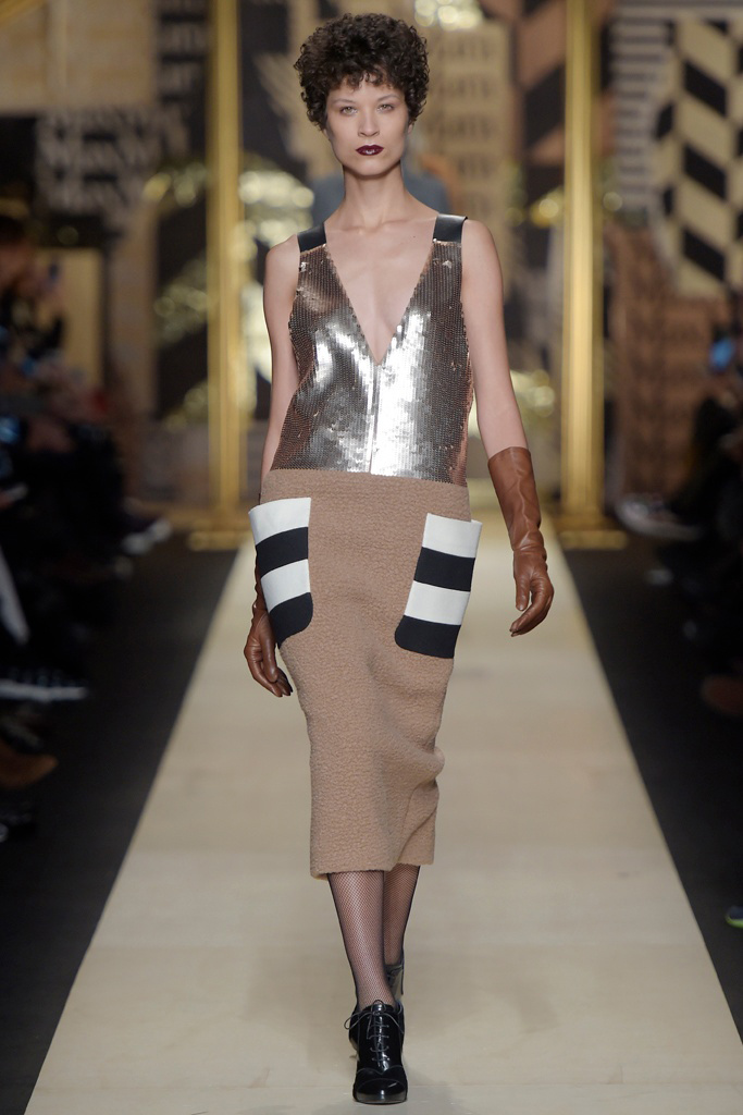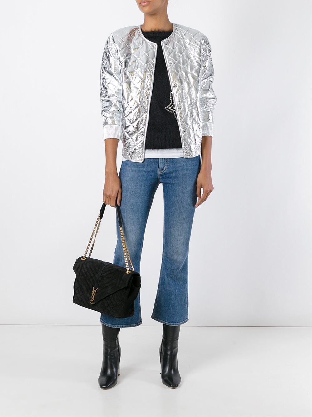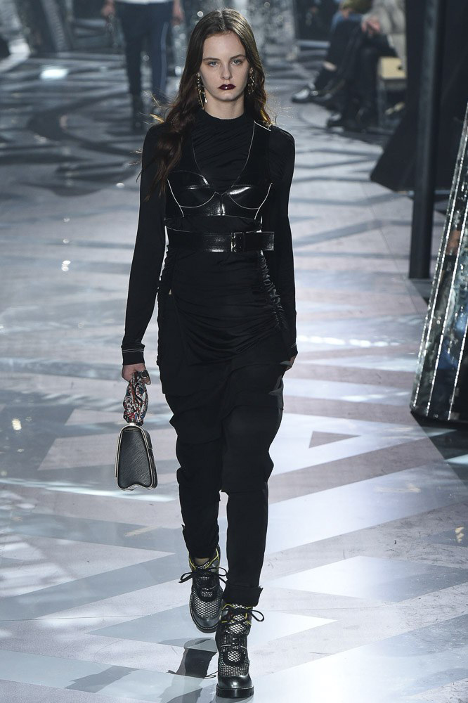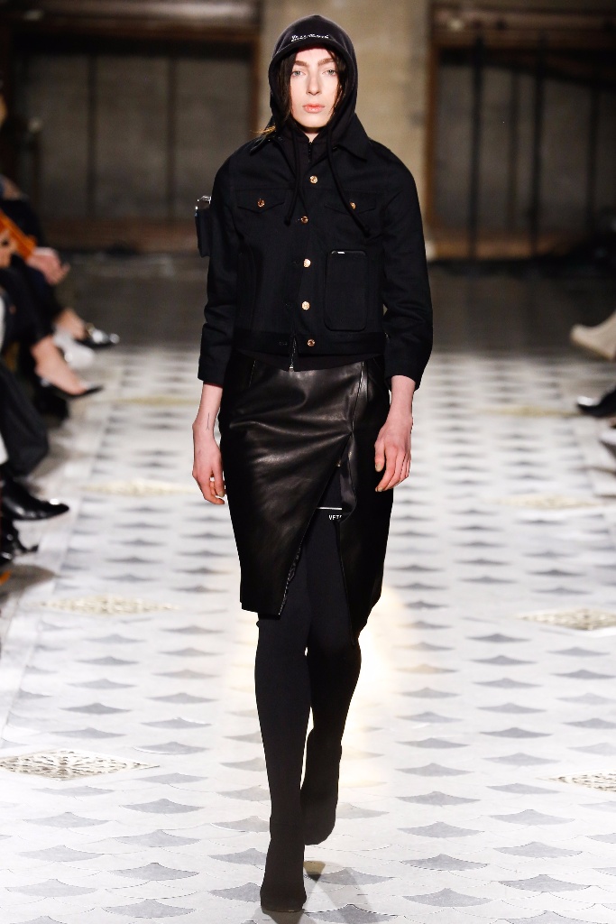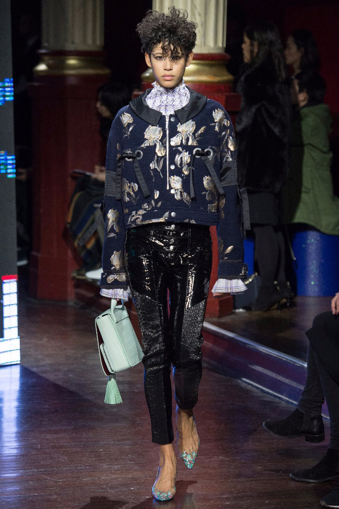 与其他材质拼接过后的PVC同样还是占主导地位,没办法,无论如何你都不能忽视它漂亮的光泽感。高级的灰色调映衬在PVC上带着颇为柔和的光泽,成套穿觉得太过头的话不妨将它们拆分开来,你会发现单独穿着的上衣或是外套非常好搭。