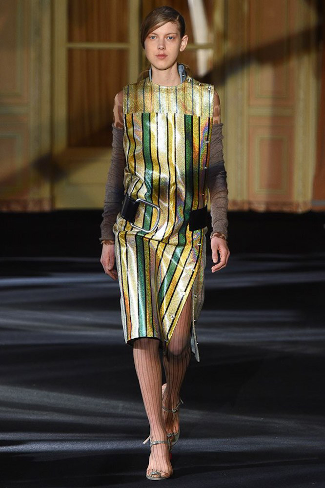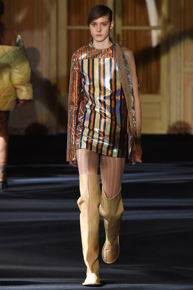 大概看过的人会有这样的质疑,“这些衣服只能出现在t台上吧?”大概是渲染了浓郁的气氛,又或是模特的妆容让你有些忧虑,其实它们单独拿出来都可以成为你出街搭配的利器。是的,不要成套穿,如果你觉得太难以hold住,不妨拆开来穿会让你容易搭配得多,例如一件带着果冻色系的PVC。