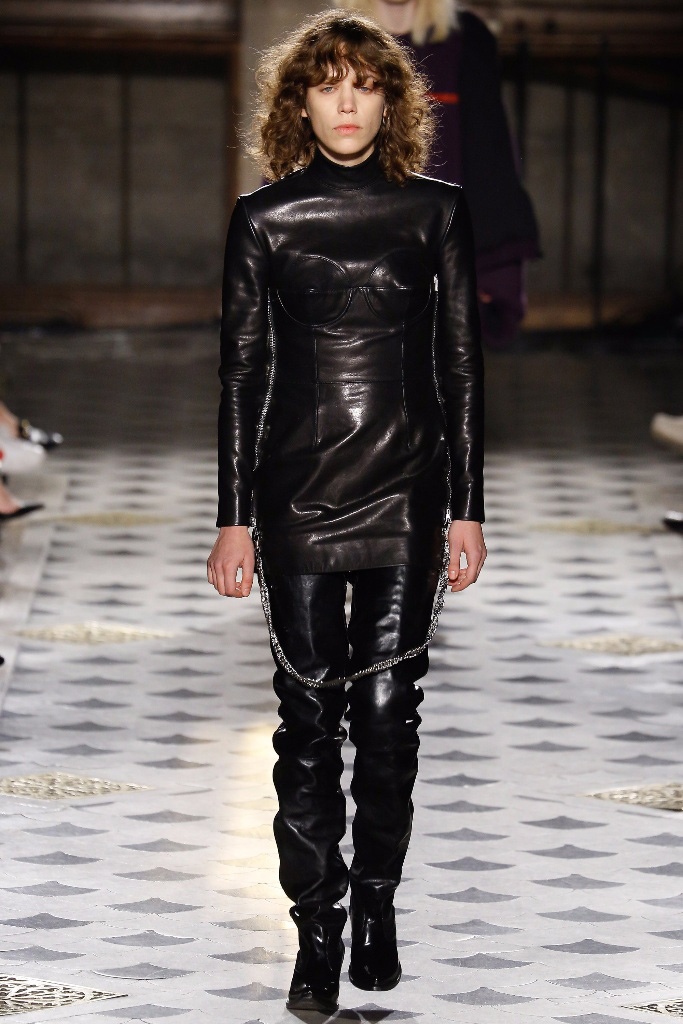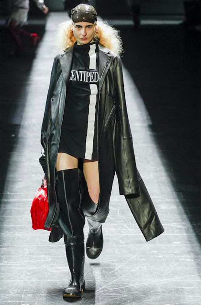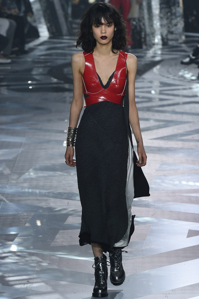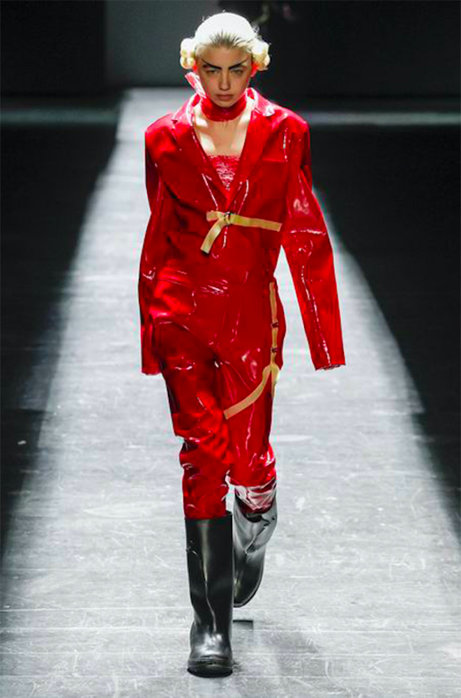 被做成背心式的PVC带着很强硬的色彩,黑红两色依旧深受设计师的喜爱,尤其是在表达一种很强势的、很暗黑的格调时,它们更能够直白的表达出来。且PVC带来皮革独有的锋利,可以内搭长裙,天气稍冷时内搭高领针织和长裤,这样的一个小物件可以为你的整个造型带来亮点。