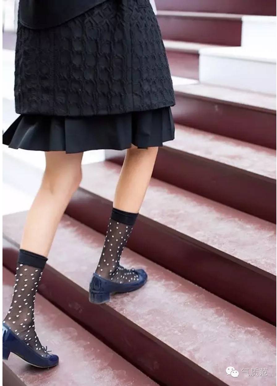黑鞋白袜也是不错的选择,不过深色袜子更能显脚踝纤细哦!