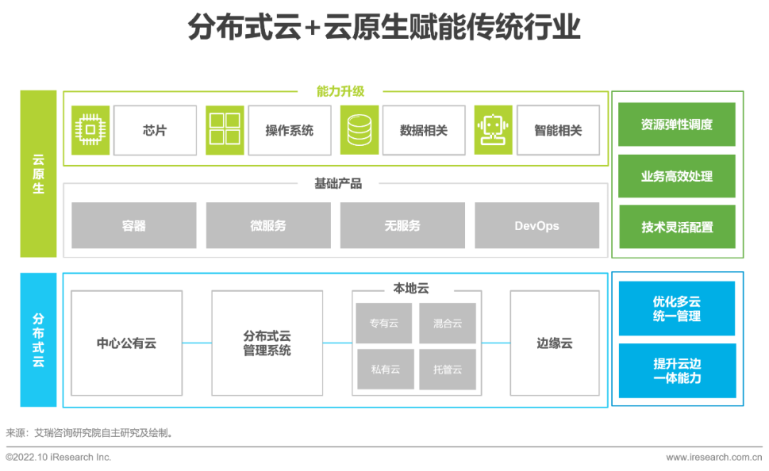 大型传统企业业务复杂,分支机构跨地域分布广泛且多倾向选择混合云部署模式。因此,提高多云管理效率,提升云边协同能力是优化大型传统企业用云效果的关键。分布式云强调“地理位置分布,逻辑上的统一”,即可以实现将企业客户所需要的云资源送至其指定位置,又可以依托统一架构和管理平台实现一致管理,避免混合云间底层异构或是边缘节点架构、接口差异造成的管理困难,从而优化用云体验,降低用云复杂度。此外,从云基础资源到能力平台逐渐广泛的引入云原生,围绕云原生所设计的产品已逐步发展至芯片、操作系统,数据库,数据湖等多个领域。分布式云通过结合云原生,可以更好的升级中心云全局管理调度能力,区域云行业及业务覆盖能力,边缘云复杂场景处理能力。从而构建更高效“云管理”和更全面的“云能力”。