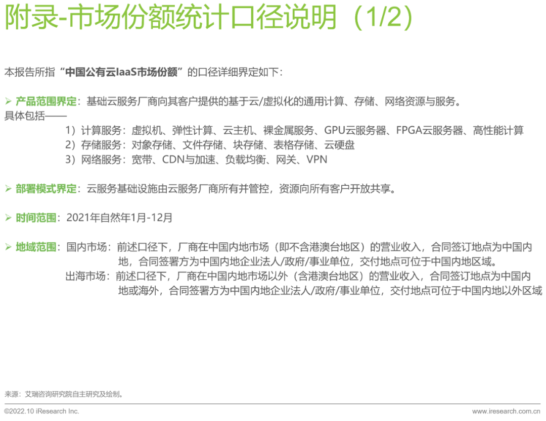 2021年中国公有云IaaS市场中TOP5厂商排名稳定,但互联网背景云厂商市场份额均略有下滑。头部互联网背景云厂商份额变化更多是受被动因素影响:一方面,行业客户的用云需求转变导致其营收增长遇到瓶颈,另一方面,生态、产业园区等领域利润转化模型仍不稳定,规模效益成型仍需时间。在公有云IaaS市场中,头部云厂商由于业务体量庞大,服务行业广泛。首先,在面临业务调整的过程中,市场反馈到实践落地的周期较长;其次,在行业发展的此消彼长间也很难兼顾“业务的全面性”和“增长的全面性”;最后,头部云厂商为争取先发优势,借助能力优势在行业用云萌芽期即开始投入,但受限于行业经验,前提投入的回报并不乐观,部分产品及服务后期转型面临挑战。反观企业产品及服务具备综合性、场景及行业则较为专精性的综合云厂商,则通过观察行业的趋势及头部厂商的市场举措,更灵活和及时地调整其发展策略,以实现取长补短,后发先至。