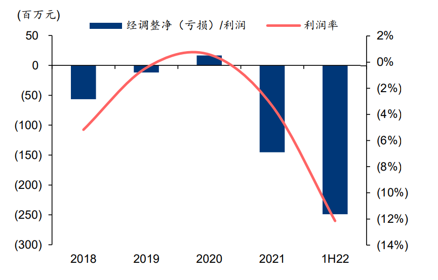 显然,在多方成本共同上涨的背景下,奈雪的茶自身的利润也被严重蚕食。今年上半年,奈雪的茶调整后净利润为-2.49亿元,而去年同期则为0.48元,由盈转亏。