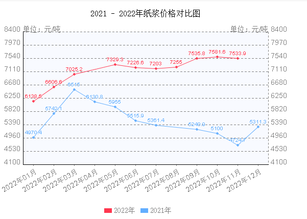 不仅仅是时令水果的价格在上涨,用于制作茶饮包装的纸浆价格也在上涨。据野天鹅网显示,今年国内纸浆价格已从年初的6138.5元/吨上涨至11月份的7533.9元/吨,细分到每个月份都比去年同期有不同程度的上涨。