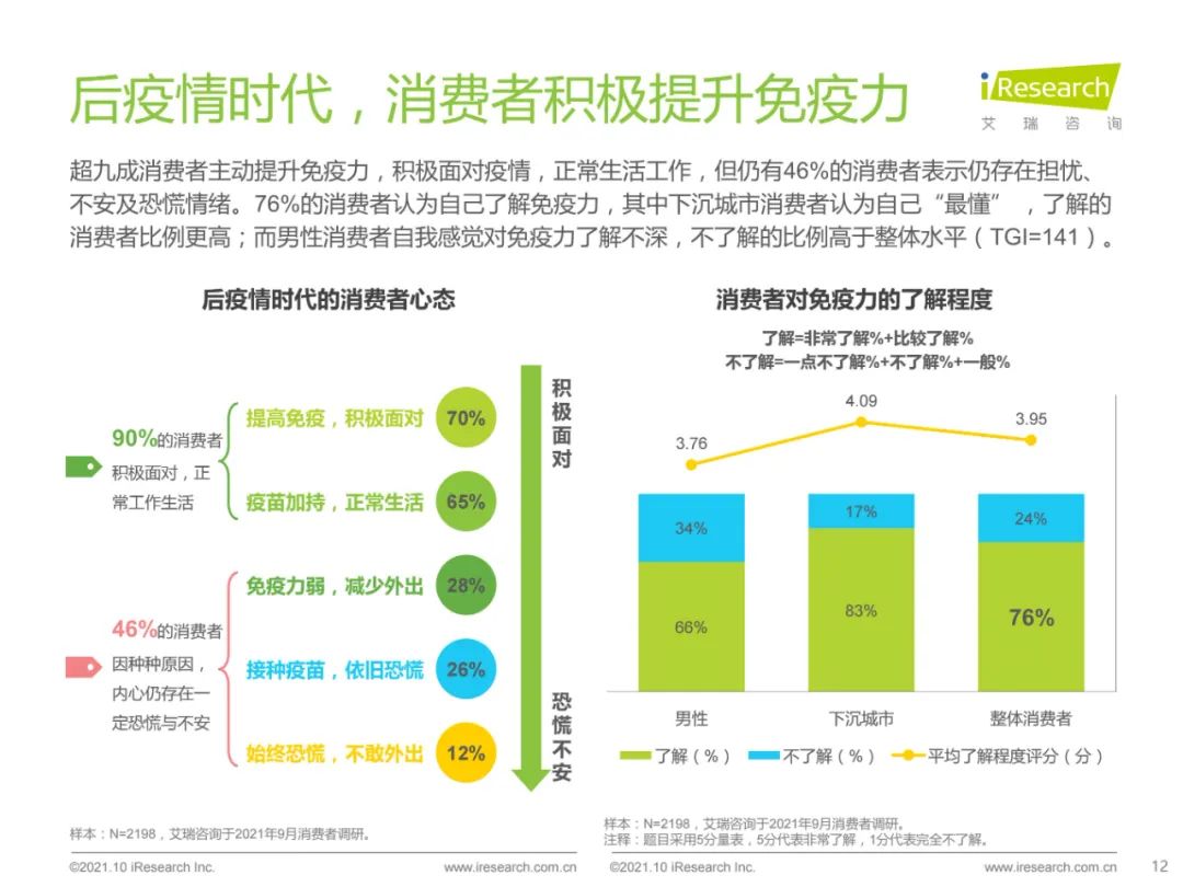 美国心理学会的一项研究表明,有近78%的成年人都认为新型冠状病毒流行是他们生活的重要压力来源之一,并有超过70%的人群表示担心长期的压力和焦虑会影响到自身的健康。艾瑞咨询《2021年后疫情时代国民健康与免疫力提升状况白皮书》也指出,超九成消费者主动提升免疫力,积极面对疫情,正常生活工作,但仍有46%的消费者表示存在担忧、不安及恐慌情绪。这表明,疫情的反复也让中国消费者对自身健康的关注持续走高,除了加强锻炼,他们倾向于在一些健康食品上增加支出,提高自身的免疫力,缓解睡眠压力。