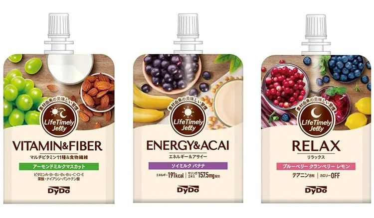 DyDo基于时间营养学理念开发了三款袋装果冻饮品“Lifetime Jelly”,分别满足居家办公时提神醒脑、营养强化、休息放松的阶段需求。