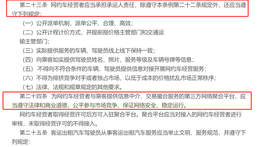 12月1日,《济南市客运出租汽车管理条例》正式施行,这是我国首个明确网约车聚合平台监管方式的地方性法规,在该《条例》中,明确了聚合平台定位为“为网约车经营者与乘客提供信息中介、交易撮合服务的第三方网络聚合平台”,应当审核网约车平台是否取得经营许可,未取得的网约车平台不得接入。网约车经营者承担承运人责任,对网约车驾驶员和车辆资质进行审核。如果发现聚合平台接入未取得经营许可的网约车平台,交通运输主管部门责令停止违法行为,处一万元以上三万元以下罚款。