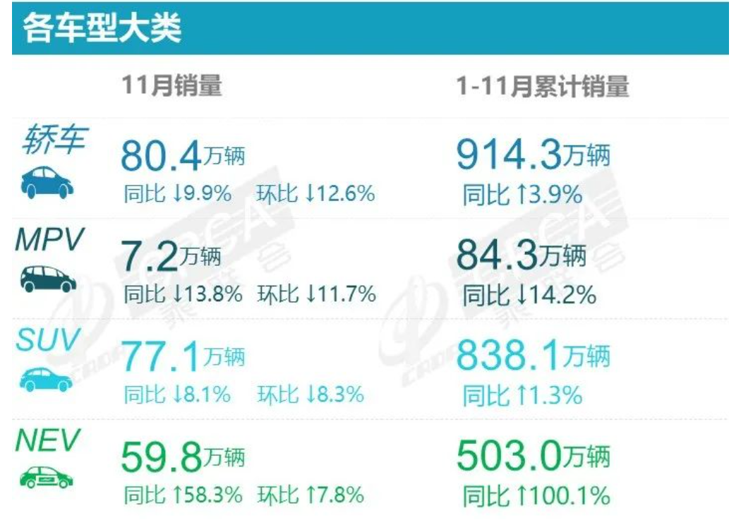 尽管秋冬季的车市有些 “萧瑟”,属于意料之中。但具体数据上,相较之下燃油车环比下降18%,同比去年11月下降27%,11月国内新能源车仍环比上涨7.8%,同比上涨58.3%,渗透率一跃达到了36.3%。