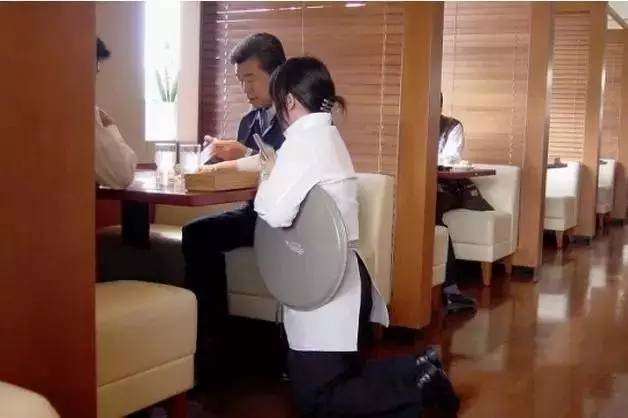 日式的料理店,客人盘腿而坐的时候,服务员需要跪着上菜,这一点可能还很好理解。但是在日本的夜店,包括ktv等消费场所,客人坐在桌子前,服务员上酒水也是跪着上的。