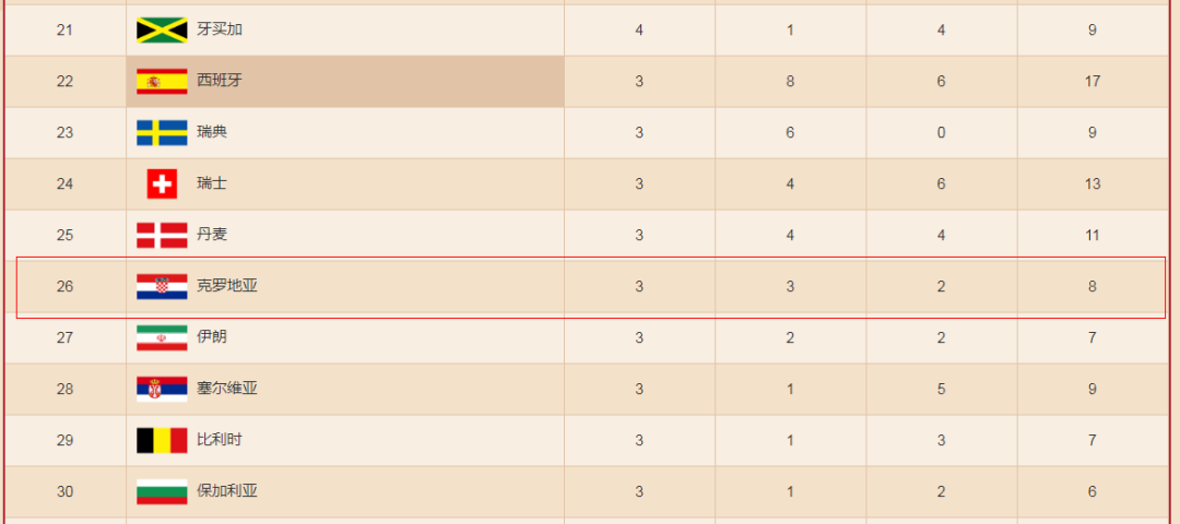 2020年东京奥运会上,克罗地亚以3金3银2铜的成绩,位列奖牌榜第26名。